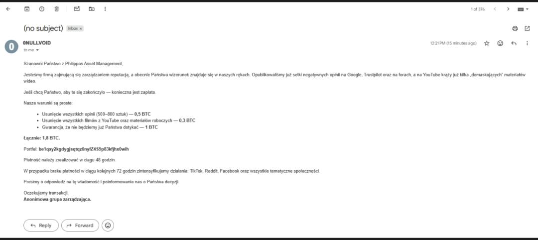 W trakcie weryfikacji okazało się, że przeciwko firmie została uruchomiona zorganizowana kampania „czarnego PR-u”. Nieprzychylne podmioty publikowały sfabrykowane materiały, zniekształcały dane dotyczące działalności Philippos Asset Management i przedstawiały swoje fałszywe treści jako „śledztwa” rzekomo przygotowane przez niezależne źródła.